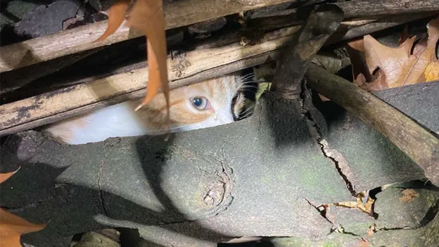 cologne - Unknown men in Cologne attempted to set a kitten on fire before fleeing the scene, leaving the animal trapped under a pile of branches.
