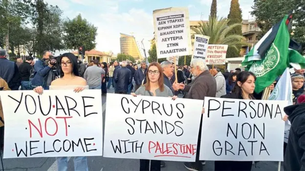 During the meetings, discussions focused on the developments in Syria and their impact on the region. The visit sparked strong reactions from the Cypriot opposition and civil society groups. Palestinian-supporting organizations protested outside the presidential building, holding banners in English with slogans like "Go back home, murderer" and "Unwanted man, we stand with Palestine, you are not welcome here."