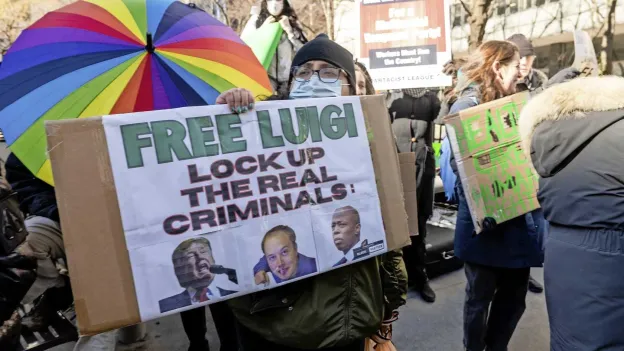 Dozens of sympathizers gather outside the Manhattan courthouse to support Luigi Mangione, the man accused of shooting insurance executive Brian Thompson. The supporters had gathered with posters and chants to express their backing for Mangione. A group of young women, dressed in a specific attire resembling Mangione's previous court appearance, gathered on the fifteenth floor of the courthouse.
